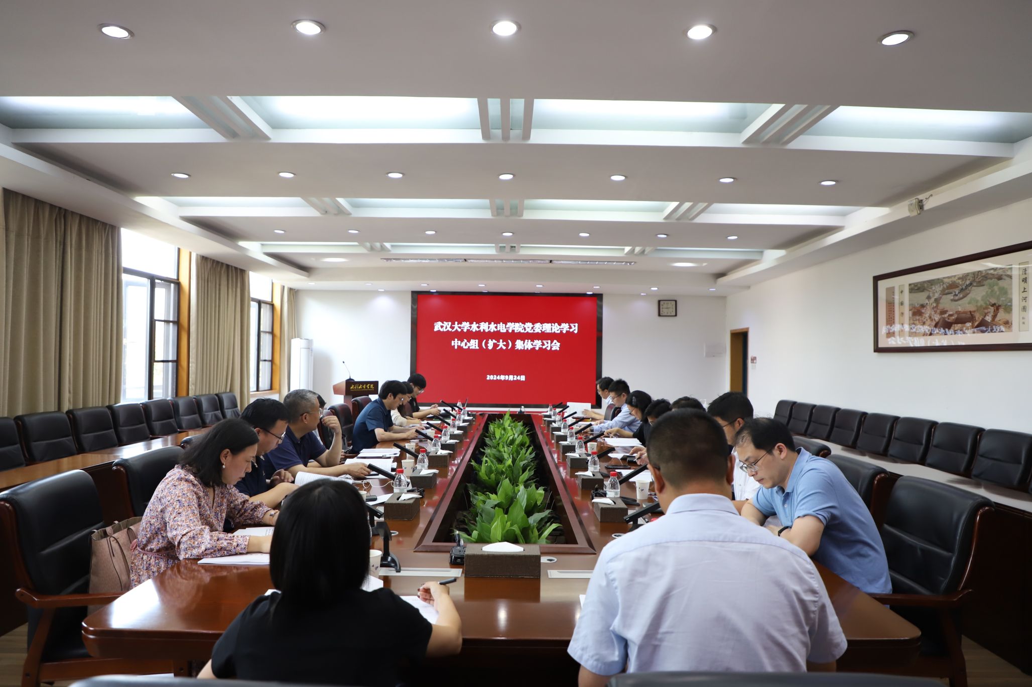 最后,李典慶作總結(jié)講話。他充分肯定了此次學(xué)習(xí)會(huì)的成果,希望全體領(lǐng)導(dǎo)干部和教職工黨支部書記們以此次學(xué)習(xí)為基礎(chǔ),融會(huì)貫通,以學(xué)促干,深入學(xué)習(xí)貫徹黨的二十屆三中全會(huì)精神和習(xí)近平總書記在全國教育大會(huì)的重要講話精神。他強(qiáng)調(diào),全體領(lǐng)導(dǎo)干部要深入學(xué)習(xí)領(lǐng)會(huì)全會(huì)精神,深刻把握進(jìn)一步全面深化改革的要求,直面學(xué)院發(fā)展中遇到的困難與挑戰(zhàn),奮力推進(jìn)各項(xiàng)改革舉措落地落實(shí),激發(fā)學(xué)院發(fā)展活力。作為基層黨組織和黨員干部,要切實(shí)改進(jìn)工作作風(fēng),克服形式主義、官僚主義頑疾,深入推進(jìn)黨風(fēng)廉政建設(shè)和反腐敗斗爭,把黨的紀(jì)律內(nèi)化為日用而不覺的言行準(zhǔn)則,維護(hù)黨的團(tuán)結(jié)統(tǒng)一,不斷增強(qiáng)黨的創(chuàng)造力、凝聚力、戰(zhàn)斗力。作為水利領(lǐng)域的教育工作者要始終牢記為黨育人、為國育才的初心使命,大力弘揚(yáng)踐行教育家精神,進(jìn)一步貫徹落實(shí)立德樹人理念,促進(jìn)學(xué)科轉(zhuǎn)型升級(jí),提升人才培養(yǎng)質(zhì)量,推動(dòng)水利新質(zhì)生產(chǎn)力的發(fā)展。