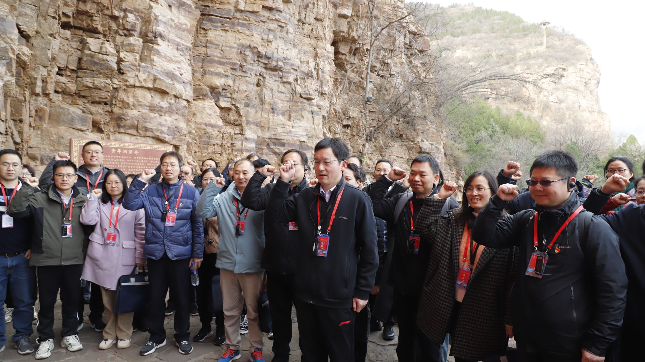 11月30日上午,學(xué)員們前往紅旗渠總干渠上的咽喉工程——青年洞,沿渠重走千里“水長(zhǎng)城”,用腳步丈量渠身,更用心感受其中蘊(yùn)含的偉大精神力量,行走在太行山懸崖峭壁的紅旗渠畔,聆聽(tīng)著“劈開(kāi)太行山,漳河穿山來(lái)”的動(dòng)人故事,實(shí)地感受著修建紅旗渠所遇到的艱險(xiǎn)與挑戰(zhàn),更感受到林縣人民齊心協(xié)力、劈山鑿洞的精神品質(zhì)。在青年洞前,學(xué)院黨委書(shū)記李典慶帶領(lǐng)全體學(xué)員面對(duì)鮮紅的黨旗,重溫入黨誓詞,聲聲誓詞在山谷回響,學(xué)員們叩問(wèn)入黨初心,牢記一名共產(chǎn)黨員的使命擔(dān)當(dāng)。