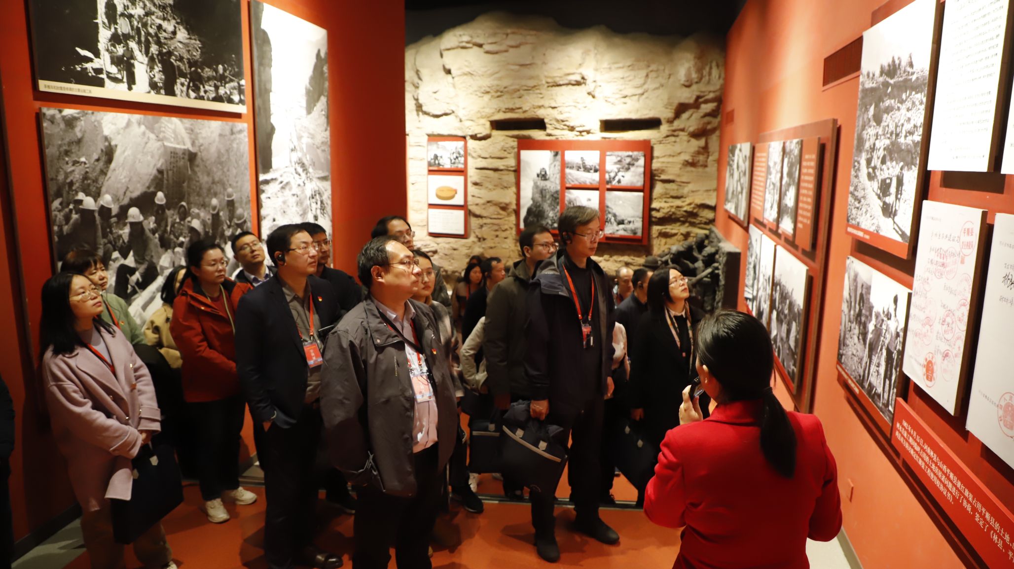 11月29日下午,學(xué)員們前往紅旗渠紀(jì)念館,在講解教師的帶領(lǐng)下,學(xué)員們深入學(xué)習(xí)了紅旗渠修建背后一段段可歌可泣的英模事跡,面對(duì)資金缺乏、物資緊張和險(xiǎn)惡施工條件等重重困難,林縣英雄兒女戰(zhàn)太行、出太行、富太行、美太行的奮斗歷程振奮人心,馬有金、任羊成、王師存、李改云、張買(mǎi)江、韓用娣等一大批紅旗渠建設(shè)模范的英雄事跡栩栩如生的展現(xiàn)在每位學(xué)員的眼前。