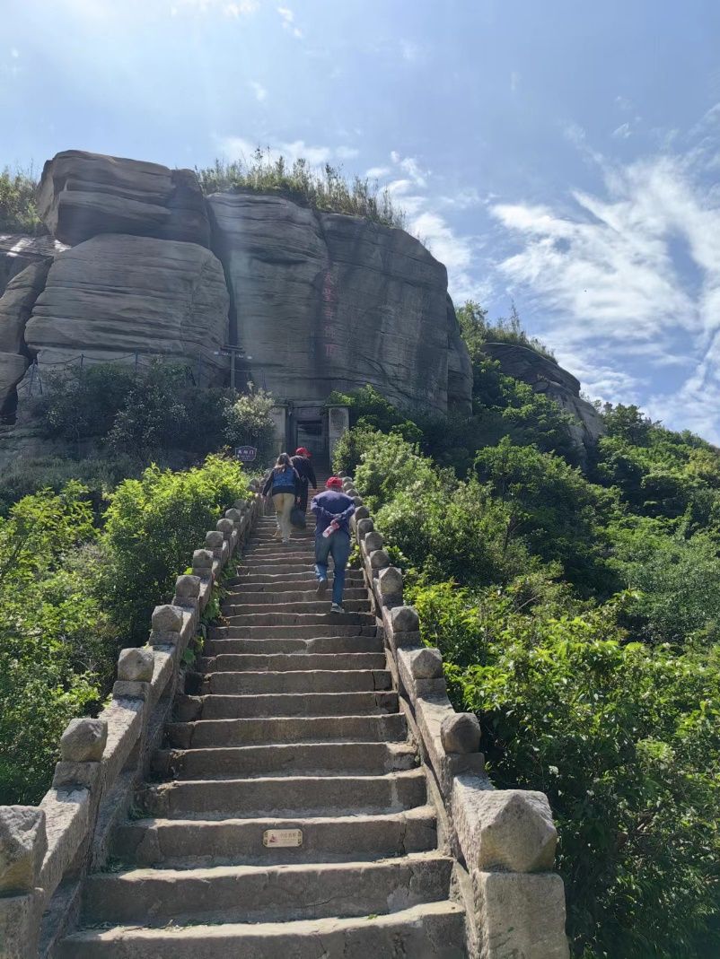下午老師們前往天臺山。天臺山因氣勢磅礴,巨巖獨特,風(fēng)景迷人,贏得了歷代文人墨客的青睞。近代愛國主義將領(lǐng)董其武在戎馬生涯中,專程來天臺山一游,并命人在絕壁上鑿刻八個大字“復(fù)興民族、挽救國家”,頻添了天臺山的英雄氣概。