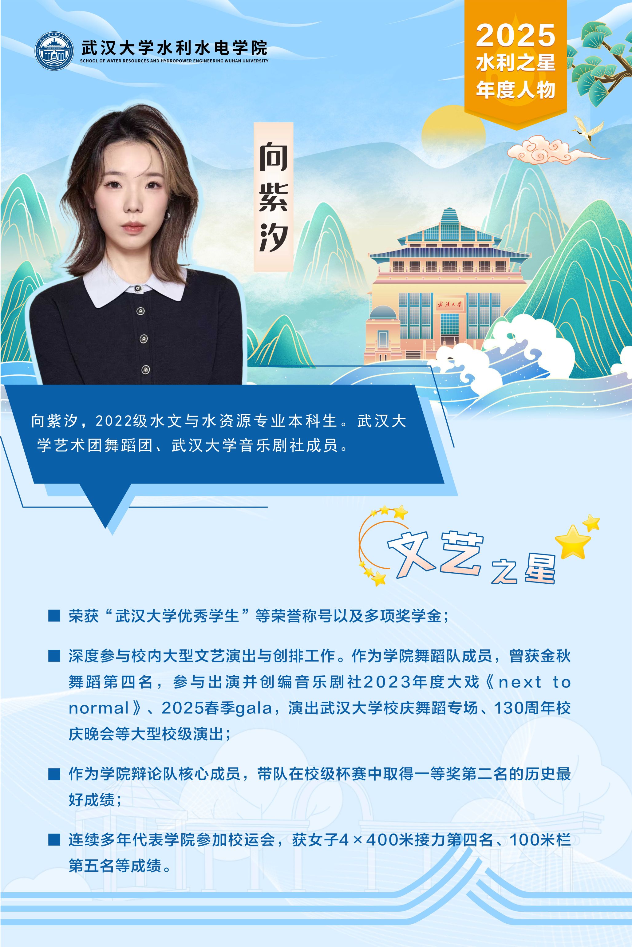 珞珈山下,東湖之濱,青春力量與水利精神在此激蕩交融。武漢大學(xué)水利水電學(xué)院2025年“水利之星”年度人物評(píng)選經(jīng)過自主報(bào)名、材料初審、現(xiàn)場(chǎng)答辯和公示,結(jié)果正式揭曉,十位在品德、學(xué)術(shù)、體育、文藝、實(shí)踐等領(lǐng)域卓爾不群的優(yōu)秀學(xué)子及團(tuán)隊(duì)脫穎而出,榮膺璀璨星章。他們以夢(mèng)想為舟,以奮斗為槳,在各自的航道上破浪前行,用生動(dòng)的實(shí)踐詮釋了新時(shí)代水利青年昂揚(yáng)風(fēng)貌,匯聚成一道照亮學(xué)院、激勵(lì)同儕的耀眼星河。