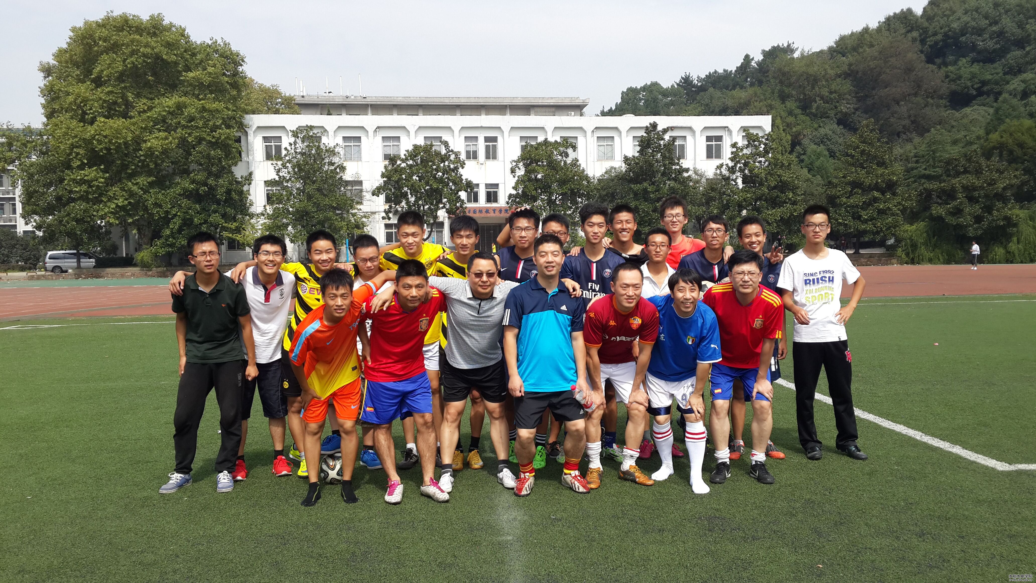 10月4日上午,96SD1班與我院學生足球隊開展了一場別開生面的友誼賽,學長們雖然畢業(yè)多年,但依舊身手矯健、配合默契,最終以2:0小勝學生隊。水電系96級輔導員劉昕老師在百忙之中趕到現(xiàn)場為同學們加油鼓勁。因為工作、路途遙遠等原因,一些同學未能回校聚會,也通過班級微信群實時參與,熱情高漲。