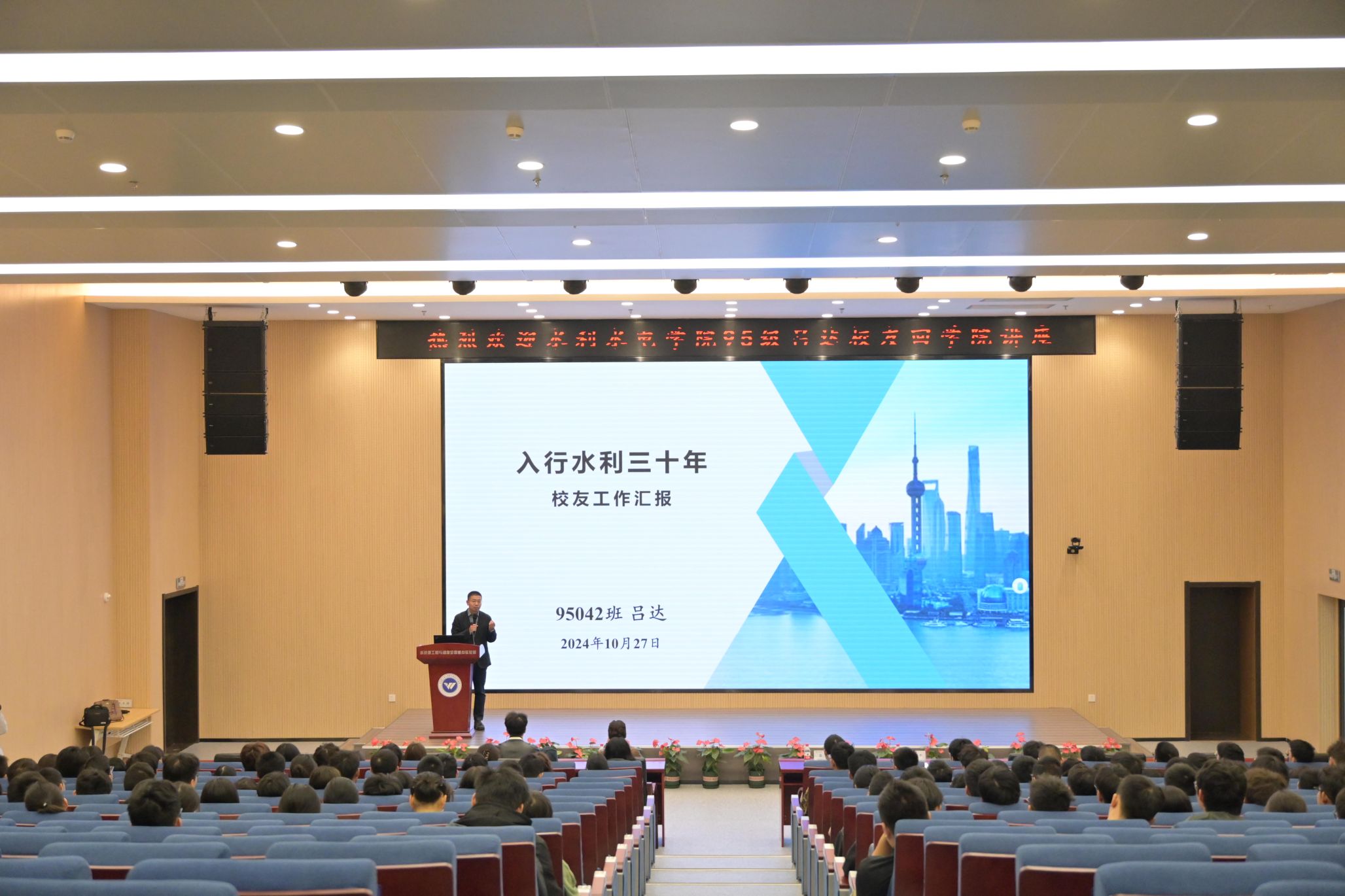 10月27日上午,杰出校友、“張蔚臻水利獎學(xué)金” 共同捐資人、上海渠觀工程設(shè)計咨詢有限公司創(chuàng)始人呂達(dá)在水電科技大樓B區(qū)109報告廳以“入行水利三十年”為主題與2024級本科生進(jìn)行分享交流。學(xué)院黨委副書記于敏、教師李小平,學(xué)工辦及2024級全體本科生參加,講座由于敏主持。