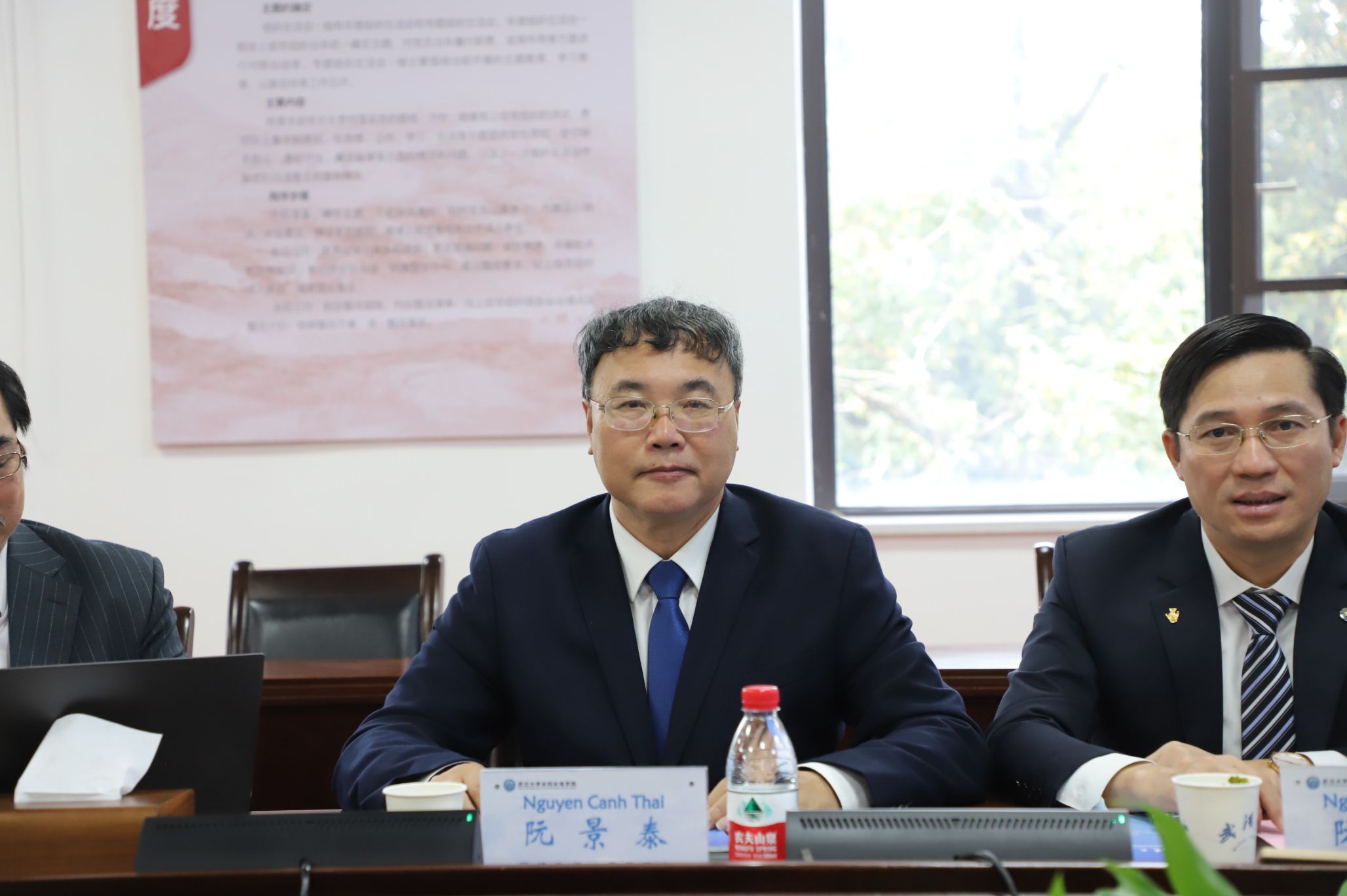 阮景泰致辭。他對(duì)自建校起,水電學(xué)院及武漢大學(xué)等其他院校提供的幫助表達(dá)衷心感謝,并表示水利專業(yè)依舊是越南水利大學(xué)的核心專業(yè),希望在人才培養(yǎng)、專業(yè)改革、學(xué)術(shù)科研等方面繼續(xù)學(xué)習(xí)水電學(xué)院經(jīng)驗(yàn)。他認(rèn)可智慧水利在新時(shí)代的巨大發(fā)展?jié)摿Γ⑾MM(jìn)一步探討高校智慧水利新專業(yè)的培養(yǎng)模式等,推進(jìn)開(kāi)展實(shí)質(zhì)性交流合作,為兩校師生創(chuàng)造平臺(tái),促進(jìn)共同發(fā)展。