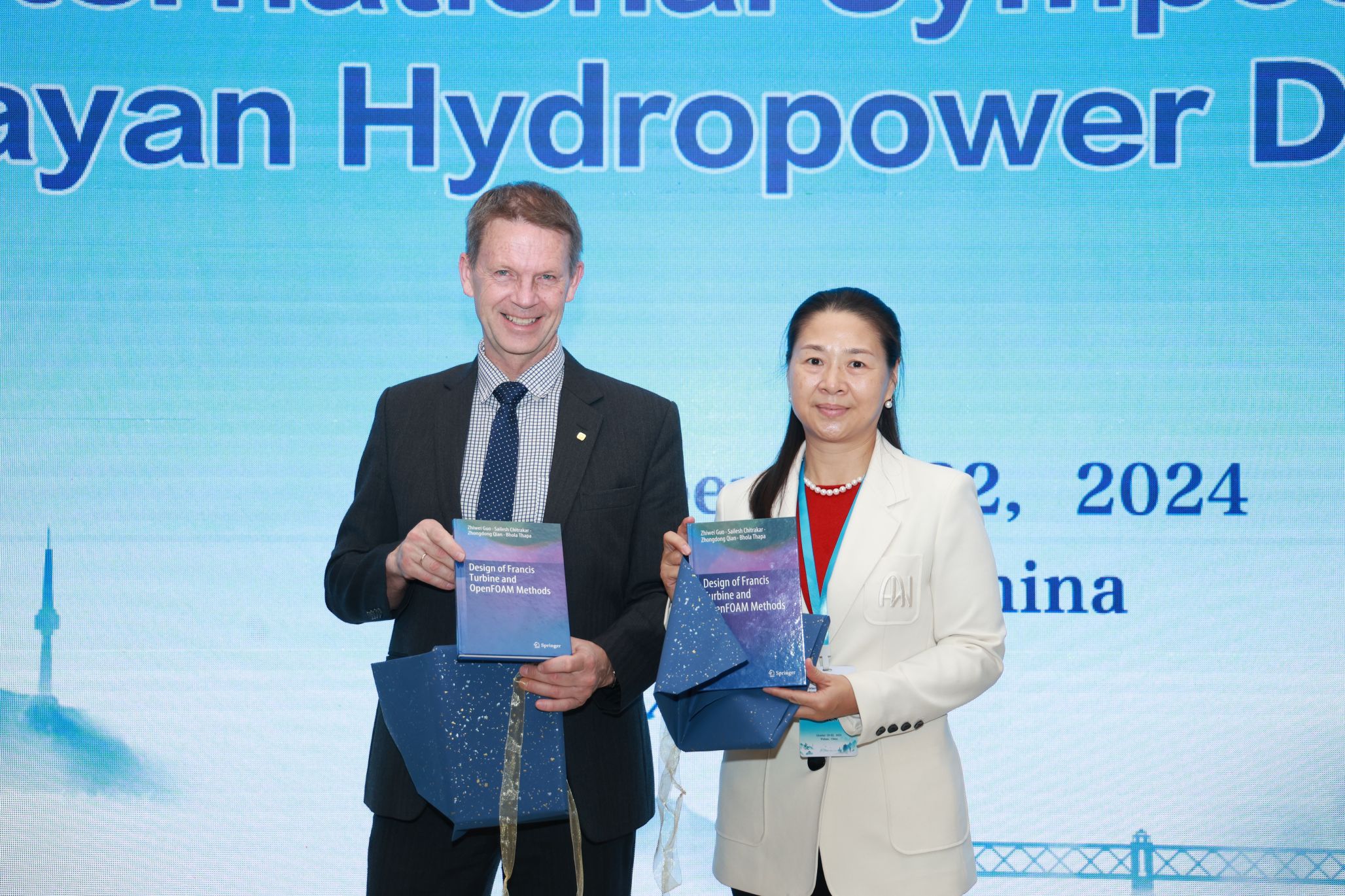 會議開幕式由喜馬拉雅水電研究中心主任錢忠東教授主持。武漢大學(xué)國際交流部副部長劉曉黎、國際山地綜合發(fā)展中心Chi H Truong分別致辭。武漢大學(xué)水利水電學(xué)院副院長任春秀、挪威科技大學(xué)Ole Gunnar Dahlhaug教授共同發(fā)布喜馬拉雅水電研究中心新編教材《Design of Francis Turbine and OpenFOAM Methods》。
