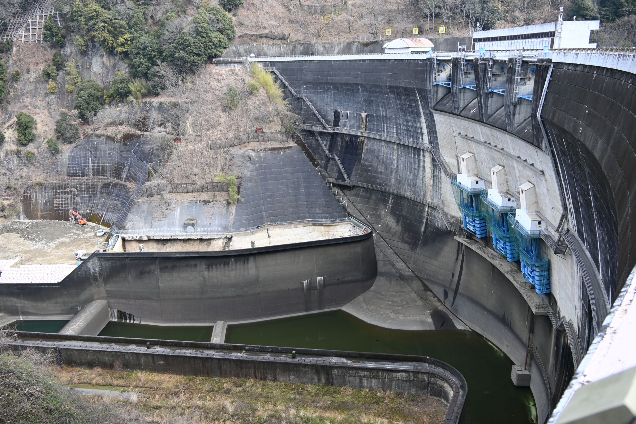 日本琵琶湖(Lake Biwa)是日本最大的淡水湖,湖泊面積達(dá)670km2,貯水量275億m3,其綜合治理一直是日本政府和地方當(dāng)局的重點(diǎn)工作。為抵御洪水災(zāi)害,琵琶湖流域構(gòu)建了“分級(jí)調(diào)控”體系:上游通過(guò)天瀨大壩和瀨田川洗堰控制泄洪流量,下游則以淀川堤防抵御洪水倒灌。1月22上午,兩校師生考察了天瀨大壩,京都大學(xué)小柴孝太老師介紹了大壩的基本情況。天瀨大壩位于宇治川,壩下游淀川、桂川、木津川等多條支流相匯后注入大阪灣,致使下游地區(qū)長(zhǎng)期深受洪水災(zāi)害困擾。天瀨大壩在淀川流量較大時(shí)可控制下泄流量至160 m3/s,從而減小下游防洪壓力。小柴老師介紹,由于壩后回水區(qū)域形似鳳凰,故得名“鳳凰湖“,以鳳凰湖為下水庫(kù),在喜撰山上修建了上水庫(kù),進(jìn)行抽水蓄能發(fā)電,上下庫(kù)高差達(dá)200余米。