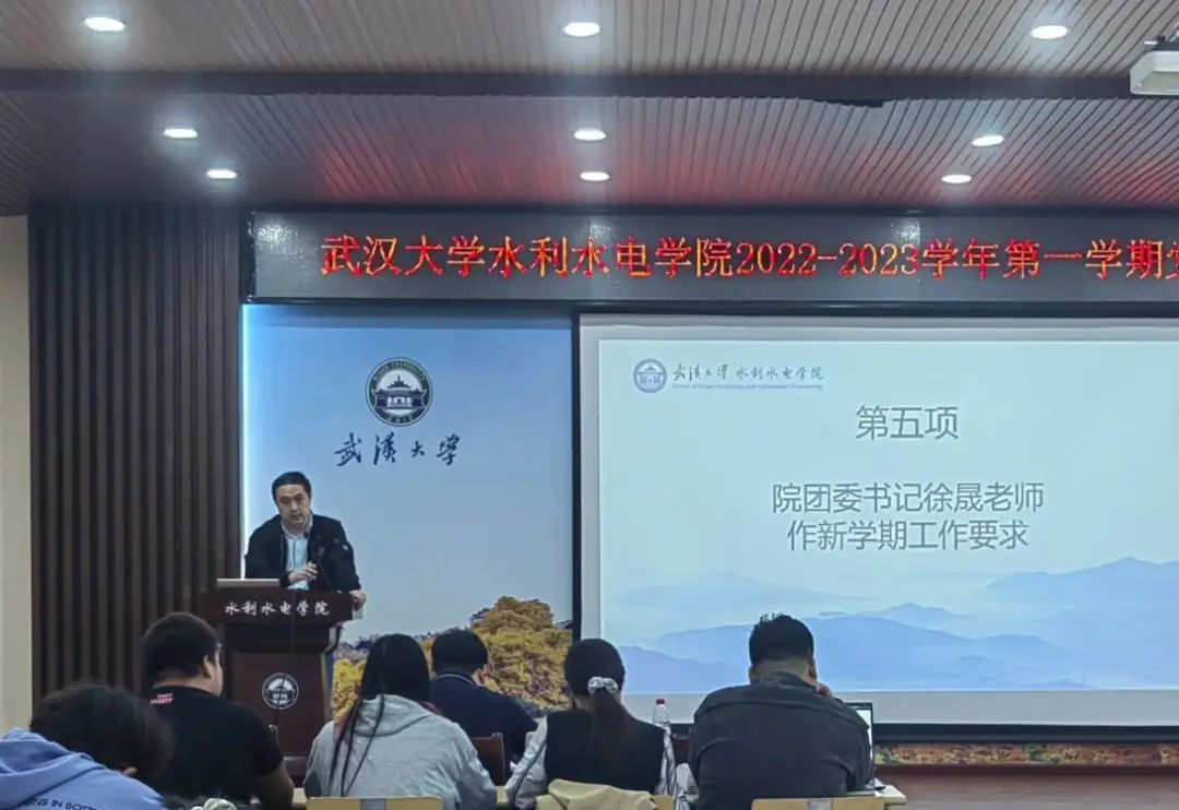 9月18日12時30分,武漢大學(xué)水利水電學(xué)院2022-2023學(xué)年第一學(xué)期黨團(tuán)學(xué)聯(lián)工作布置會在學(xué)院8328報告廳舉行。學(xué)院團(tuán)委書記,2020級輔導(dǎo)員徐晟老師、院團(tuán)委副書記,2019級輔導(dǎo)員于鵬杰老師、院團(tuán)委副書記,2021級輔導(dǎo)員郭喆老師、2022級輔導(dǎo)員鄧力源老師、水利水電學(xué)院本科生黨團(tuán)學(xué)聯(lián)學(xué)生骨干以及各年級的班長和團(tuán)支書們共同參加了本次大會。會議由分團(tuán)委秘書長廖櫻花雨同學(xué)主持。