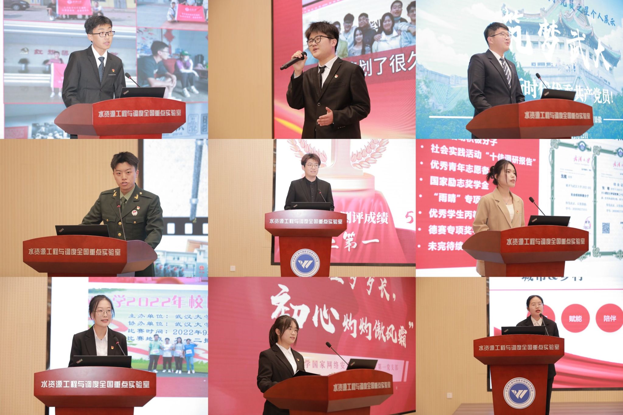 “啟明星一號”衛(wèi)星;學生黨員孟敬然曾戍守邊疆、完成國防任務,在部隊里火線入黨;學生黨員官雅琪踏遍祖國河山,用實際行動“把論文寫在祖國大地上”;學生黨員余菀雅熱心公益,在支教工作中點亮山區(qū)孩子前行之路;學生黨員李越全心全意服務身邊同學,在黨支部中成長,又繼續(xù)帶領支部前行……隨后的主題宣講環(huán)節(jié),每名候選人更是將總書記回信的內(nèi)容和精神從自身經(jīng)歷和學科的視角出發(fā),向大家展示出當代大學生黨員的時代強音,在他們中,學生黨員耿嘉駿展示了作為新時代水利人服務國家重大戰(zhàn)略的使命擔當;學生黨員張敏以昂揚的斗志致力于為維護公平正義發(fā)出青年黨員的光與熱;學生黨員郭柯辰樹立將個人的奮斗融入網(wǎng)絡強國建設的理想;學生黨員王云帆表達了到祖國最需要的地方為人民和社會服務奉獻的決心。