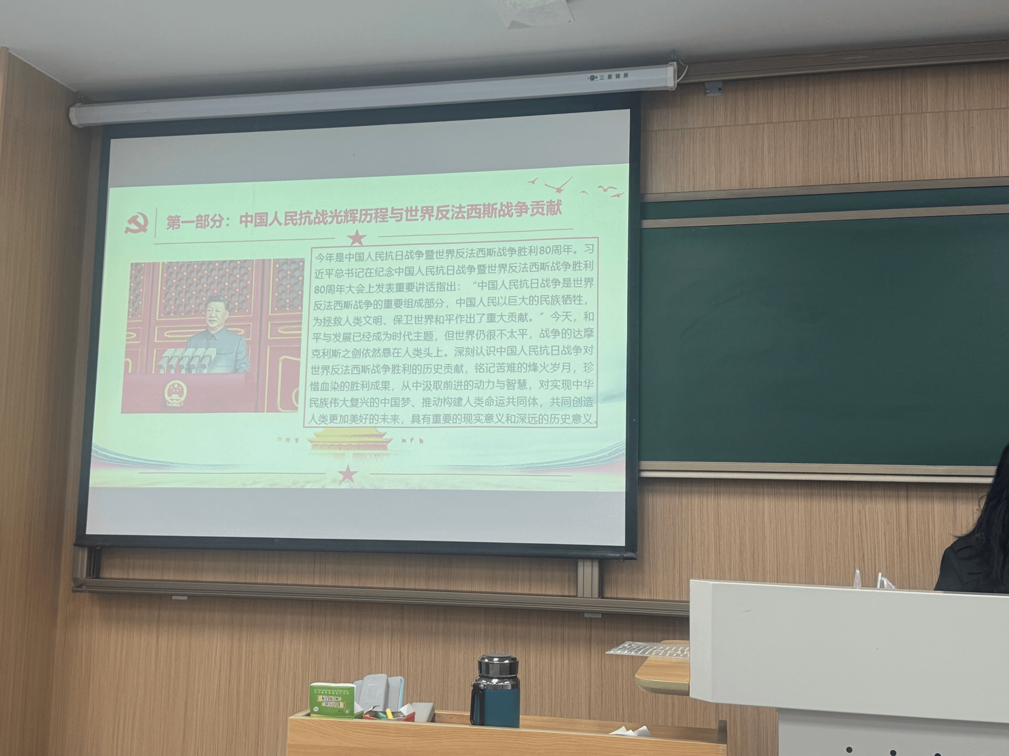接下來,蔣欣一結(jié)合PPT和相關(guān)視頻,深入講解了武漢在抗日戰(zhàn)爭時期的特殊地位與貢獻(xiàn),如武漢會戰(zhàn)的歷史意義,并帶領(lǐng)大家學(xué)習(xí)陳懷民、郝夢齡、張自忠等抗戰(zhàn)英烈的英勇事跡以及精忠報(bào)國的崇高氣節(jié)。