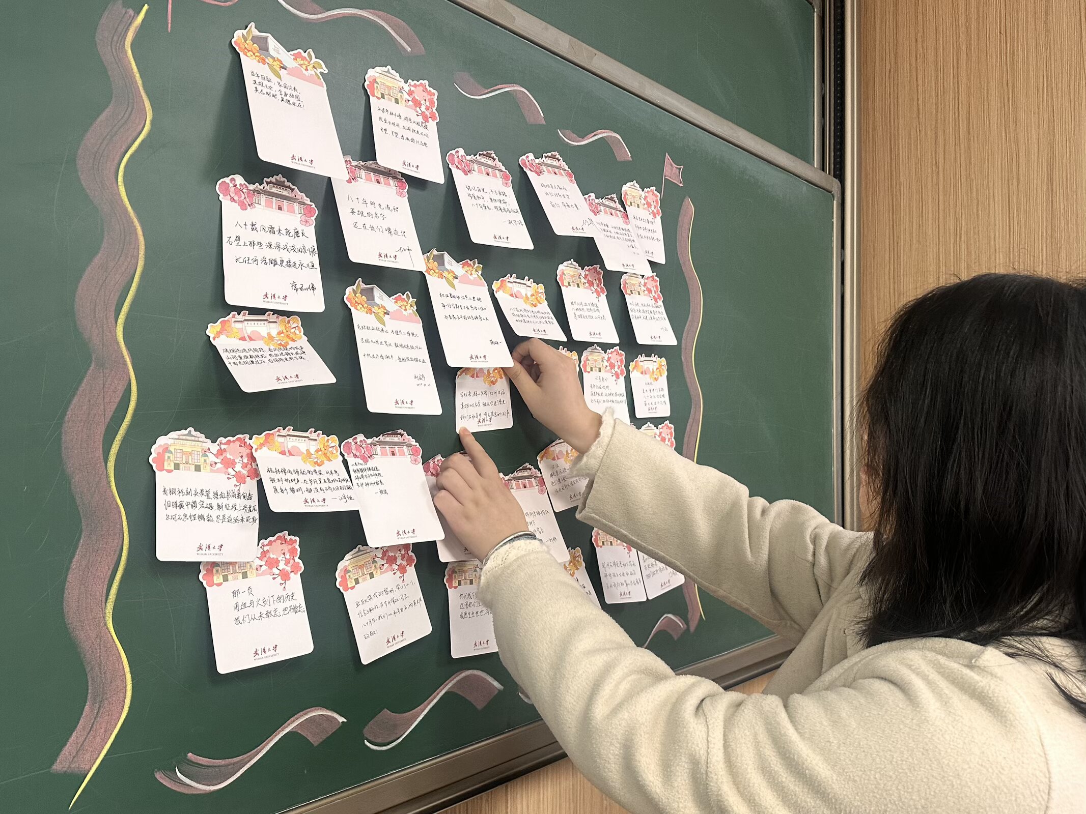 最后,圍繞“紀(jì)念中國人民抗日戰(zhàn)爭暨世界反法西斯戰(zhàn)爭勝利80周年”主題,每位支部成員創(chuàng)作“三行詩”。用簡潔、真摯的語言,表達(dá)對革命先烈的深切緬懷、對偉大勝利的由衷禮贊、對世界和平的真誠祈愿,并將全體黨員創(chuàng)作的三行詩統(tǒng)一書寫在特制的卡片上,集中粘貼于主題展示板,形成一道獨(dú)特的“情感寄語墻”,進(jìn)一步升華活動情感體驗(yàn)。