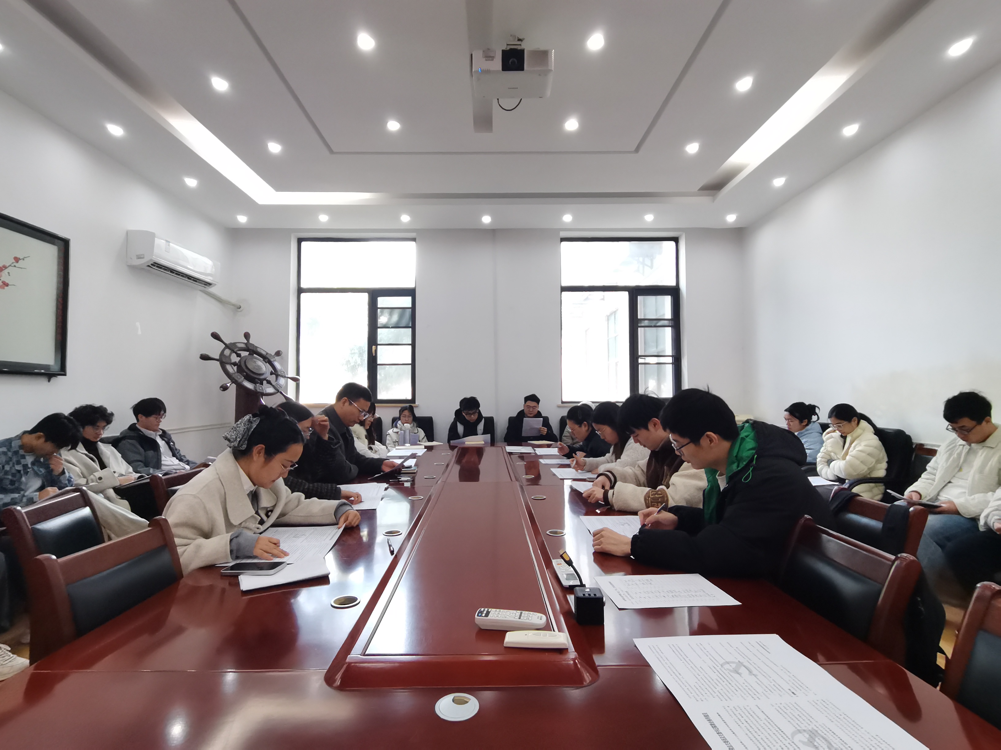 首先,周慧明同志傳達12月聯(lián)席會指導意見,圍繞理論學習會主題、黨員培訓集中大課安排和黨員發(fā)展工作等重點任務展開介紹。周慧明同志指出各支部要圍繞“深入學習貫徹習近平總書記在中共中央政治局第二十三次集體學習時的重要講話精神”、“深入學習貫徹習近平總書記對全面依法治校工作作出的重要指示和中央全面依法治國工作會議精神”和“深入學習習近平總書記重要文章《因地制宜發(fā)展新質(zhì)生產(chǎn)力》”等主題開展12月理論學習會。各支部后續(xù)工作重點包括規(guī)范黨員發(fā)展材料書寫、督促黨員按時參加武漢大學黨員基本培訓第三次集中大課、強化會議記錄本管理要求和落實宣傳工作注意事項。隨后,周慧明同志提醒各支部組織入圍“你講我聽”研究生先進黨員事跡宣講活動決賽的選手做好賽前準備工作,同時強調(diào)各支部需按時完成每個月的“三會一課”,并加強內(nèi)容的豐富性與形式的多樣性。