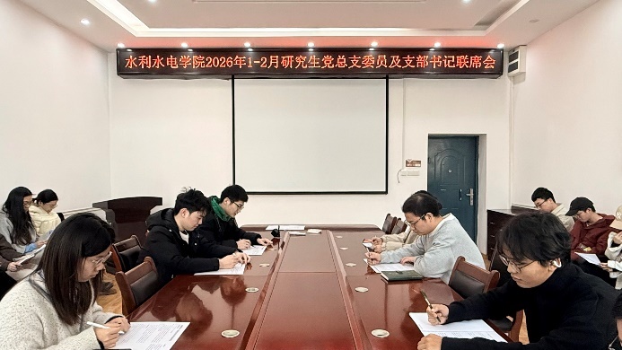 至此,水利水電學(xué)院2026年1-2月研究生黨總支委員會(huì)及支部書記聯(lián)席會(huì)圓滿結(jié)束。本次會(huì)議明確了2026年開局階段研究生黨建工作的重點(diǎn)任務(wù)與規(guī)范要求,通過政策傳達(dá)、經(jīng)驗(yàn)分享與問題整改部署,為各支部在新一年提升工作實(shí)效、夯實(shí)組織基礎(chǔ)指明了方向。