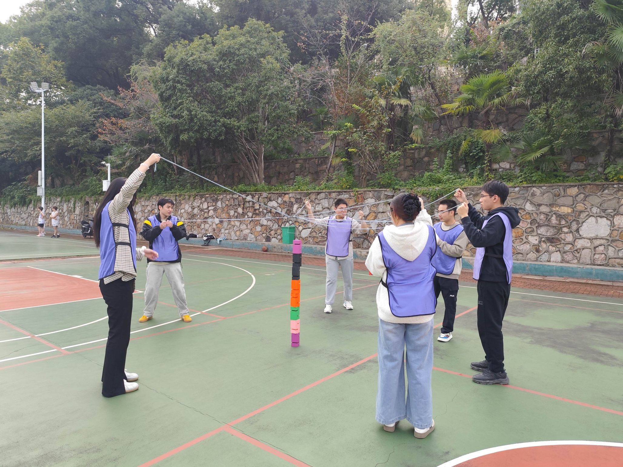 首先,隊員們進行了“步步高升”游戲。每組成員合力控制繩子疊出十層的高塔,這對團隊溝通與協(xié)調(diào)性提出了要求。這項活動讓大家更加默契,為后續(xù)精彩的活動奠定了基礎。
