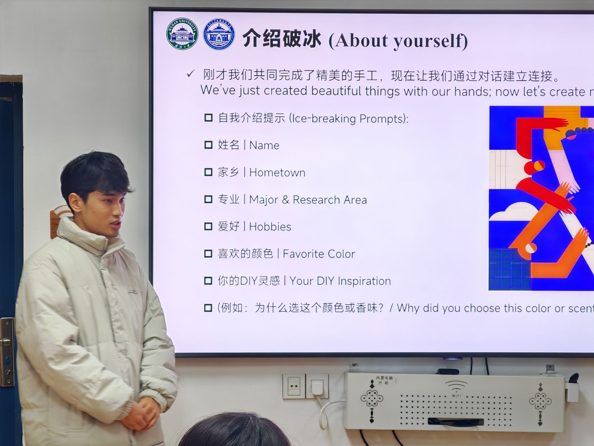 自我介紹后,同學(xué)們還圍繞生活靈感與科研心路歷程展開了深入交流。大家分享了家鄉(xiāng)獨特的文化符號如何成為科研壓力下的心理慰藉,并探討了在水利工程等專業(yè)領(lǐng)域求索時所需具備的耐心與韌性。從初抵江城時的好奇探索,到在珞珈山下求學(xué)生活的點滴趣事,生活化的敘述中處處流露出對多元文化的尊重與包容。通過這種高品質(zhì)的同輩對話,同學(xué)們不僅展現(xiàn)了積極向上的精神面貌,更在交流中尋找到了跨越地緣的情感共鳴。