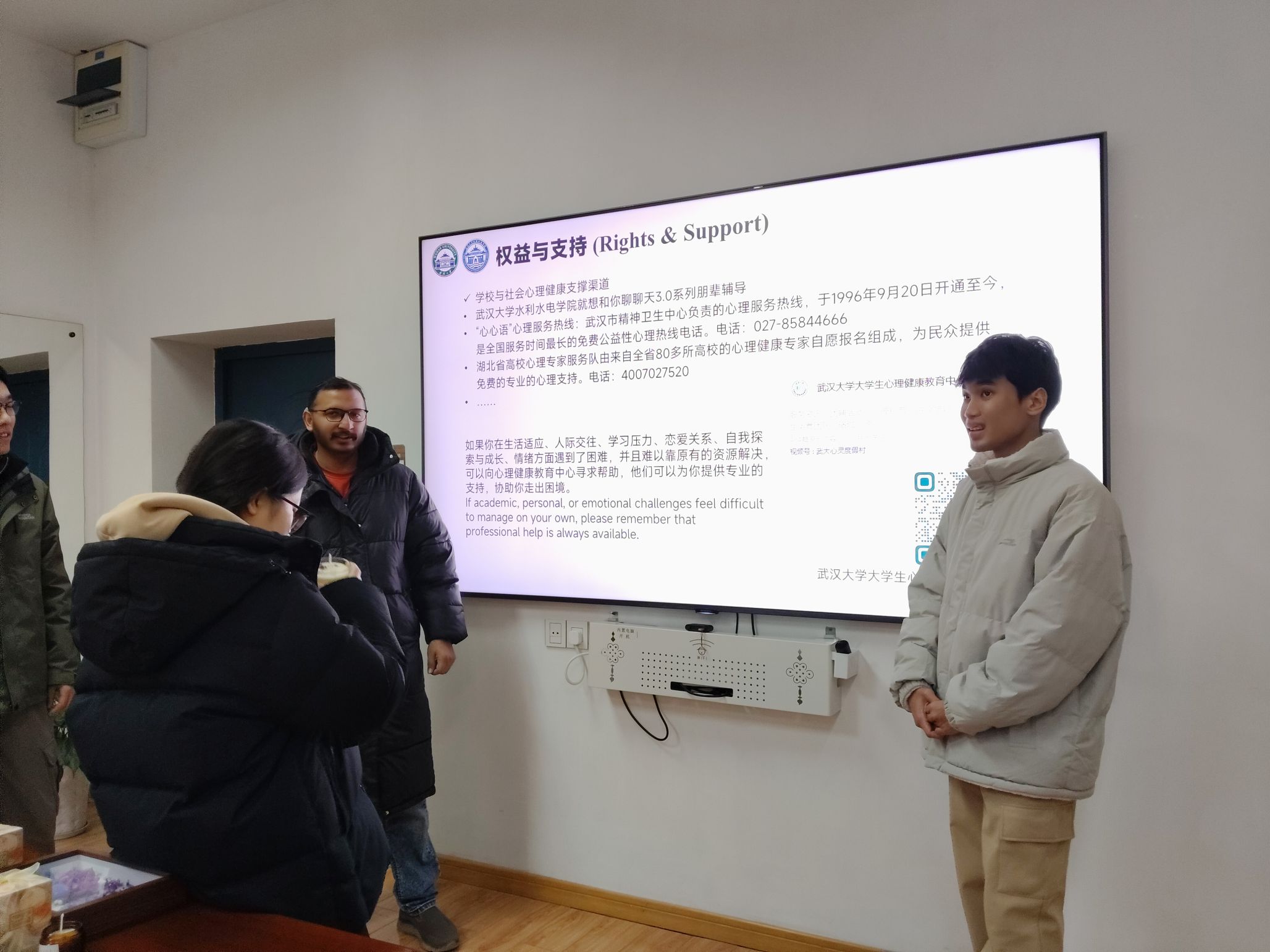 作為保障研究生權(quán)益的重要職能部門,碩博發(fā)展權(quán)益部始終將心理健康視為學(xué)子發(fā)展權(quán)益的核心內(nèi)涵。活動最后,負(fù)責(zé)人向同學(xué)們系統(tǒng)地介紹了校內(nèi)外多維心理支持資源。從學(xué)院特色朋輩輔導(dǎo)項目“就想和你聊聊天”,到武漢大學(xué)的大學(xué)生心理健康教育中心的專業(yè)化服務(wù),再到“心心語”等社會公益心理熱線,學(xué)院致力于為每一位學(xué)子搭建起全方位的心靈守護網(wǎng)絡(luò)。我們也希望向每一位同學(xué)傳遞這樣一個信念:面對學(xué)業(yè)、生活或情緒上的挑戰(zhàn),大家不必選擇獨自硬扛,專業(yè)支持力量始終觸手可及,將陪伴每一位學(xué)子共克難關(guān)。