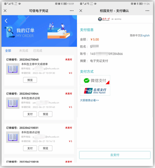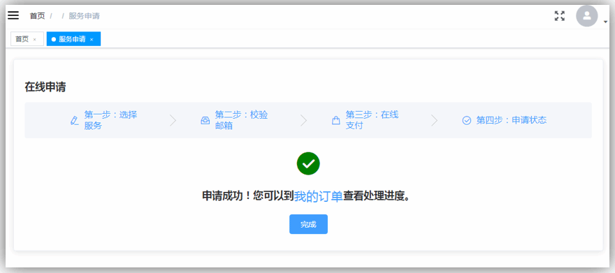 訂單如果需要支付,則進入支付流程,根據(jù)頁面提示選擇合適支付方式完成訂單支付后,電子憑證即申請成功,請進入自己的郵箱進行查收。