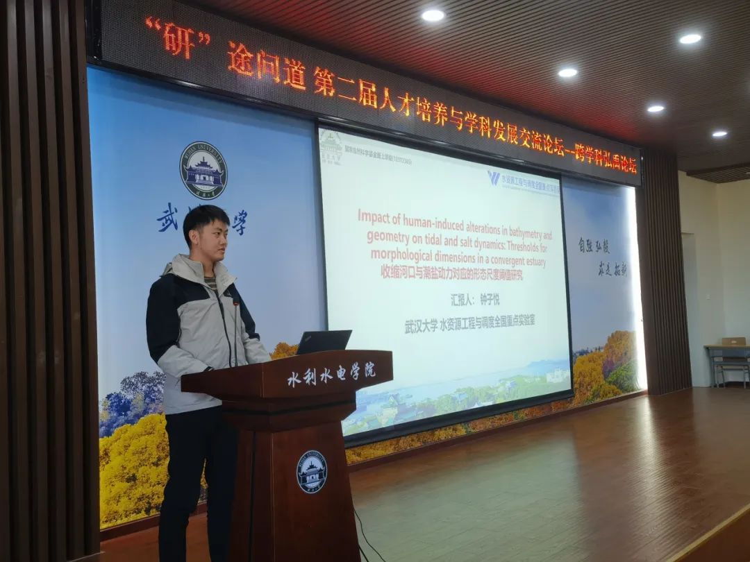 2024年10月24日下午,“研”途問道——第二屆人才培養(yǎng)與學科發(fā)展交流論壇分會場活動之跨學科弘禹論壇在武漢大學工學部八教8328會場順利舉行。水利水電學院黨委副書記左志香,測繪遙感信息工程國家重點實驗室團委書記蔡璐陽,土木建筑工程學院特聘副研究員鄧鵬海,水利水電學院教授李志威、楊逸凡,水利水電學院副教授盧新華,水利水電學院研究生輔導員許笑星、萬柳柳作為評委出席了本次論壇。活動主講嘉賓分別為來自水利水電學院、測繪遙感信息工程國家重點實驗室、電氣與自動化學院和土木建筑工程學院的六位碩博研究生。