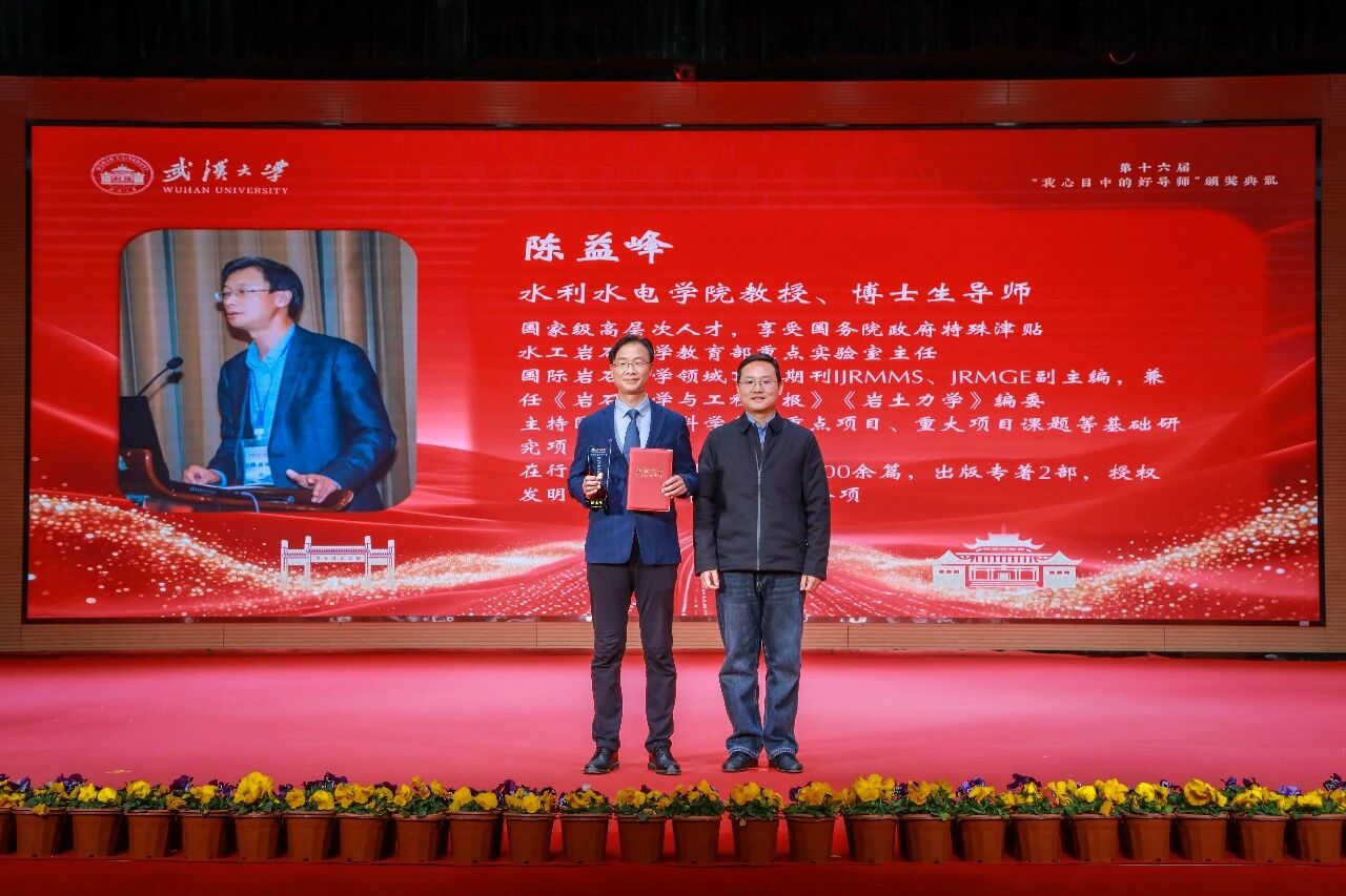 12月29日晚,武漢大學(xué)第十六屆“我心目中的好導(dǎo)師”頒獎(jiǎng)典禮在人文館主廳舉行。校賬張平文院士、校黨委副書記楚龍強(qiáng)出席典禮,學(xué)校相關(guān)職能部門、研究生培養(yǎng)單位師生代表參會(huì)。學(xué)院陳益峰教授獲評“我心目中的好導(dǎo)師”榮譽(yù)稱號,學(xué)院院長劉攀,黨委副書記左志香,研究生輔導(dǎo)員許笑星、萬柳柳,陳益峰教授團(tuán)隊(duì)成員和學(xué)院研究生代表等共同見證榮耀時(shí)刻。