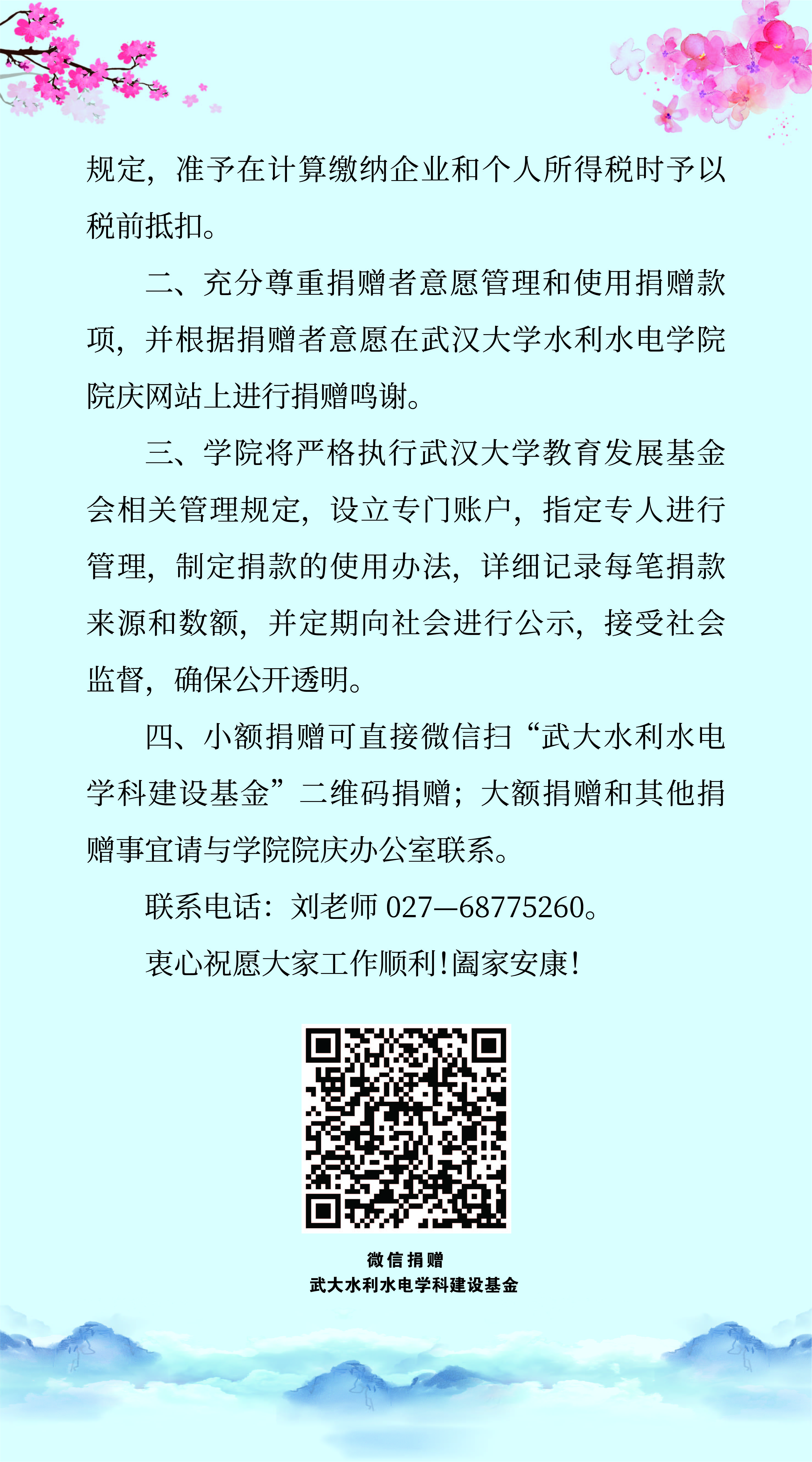 武漢大學水利水電學院建院70周年捐贈倡議書
