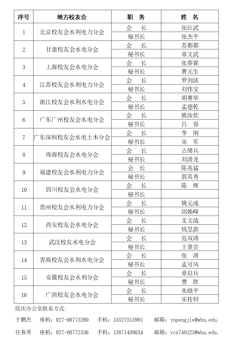 為了在校友與學院之間搭建起一座交流的橋梁,凝聚校友,傳遞友誼,為校友服務,加深水院情結,發(fā)揮校友的作用,動員校友及社會各界為學院的發(fā)展出謀劃策,獻策獻力,提高學院的辦學水平,為祖國建設服務,學院黨政辦公室是負責聯(lián)絡校友的常設機構,歡迎海內外各界校友們常回家看看!